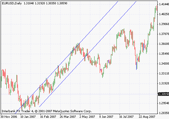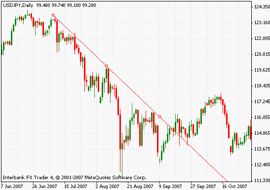 A trendline is a straignt line that shows the direction of price. In practice, the trendline is drawn either above the 'highs' or below 'lows' and it needs to touch at least three peaks/highs or troughs/lows. For example, by connecting the low points you will form un up trendline and for a downtrend line connect the peaks. The trendline should not be drawn above or higher than the price action.